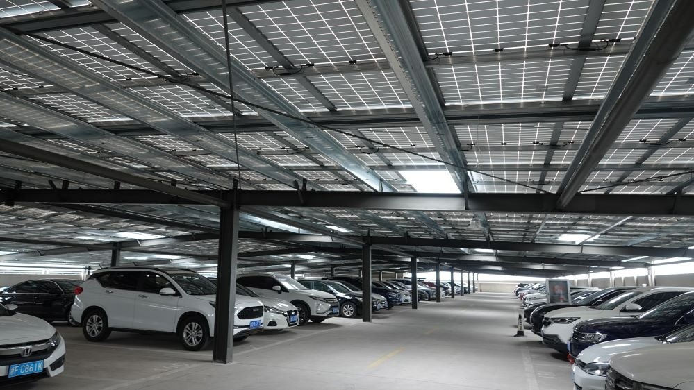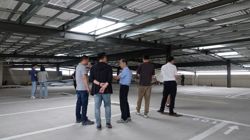 會后,黨員們實地參觀了廠區光伏車棚。整齊排列的光伏板既為車輛遮陰,又持續輸送清潔電力,成為企業綠色發展的亮眼名片。其高效、整潔、與廠區環境融為一體的設計,直觀印證了項目合作的顯著成效。