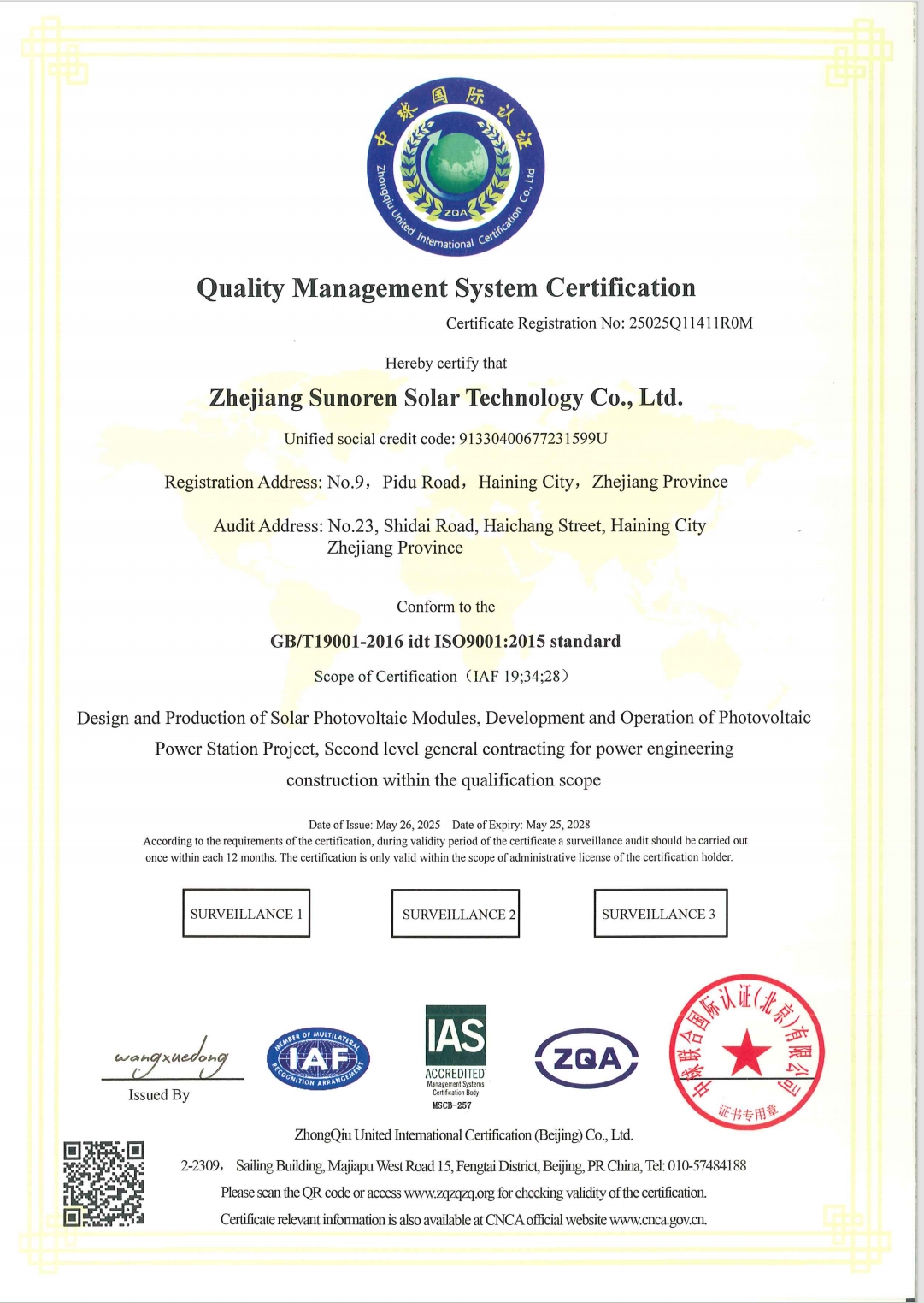 Founded in 2008, Zhejiang Sunoren Solar Technology Co., Ltd. (“Sunoren”, stock code: 603105) is a national new high-tech enterprise that focuses on investment, construction, and operation of distributed photovoltaic power stations and is dedicated to distributed solar power generation. On the basis of continuously expanding the scale of self-sustained distributed power stations and relying on existing distributed photovoltaics customer resources, the company makes steady progress in charging piles and industrial and commercial distributed energy storage business, proactively engages in the R&D and sales of off-grid and on-grid energy storage products, constantly explores new application fields of distributed energy, resolves to become the pioneer, model, and leader in pursuit of carbon peak and carbon neutrality, and contributes to the construction of a new power system based on new energy.
