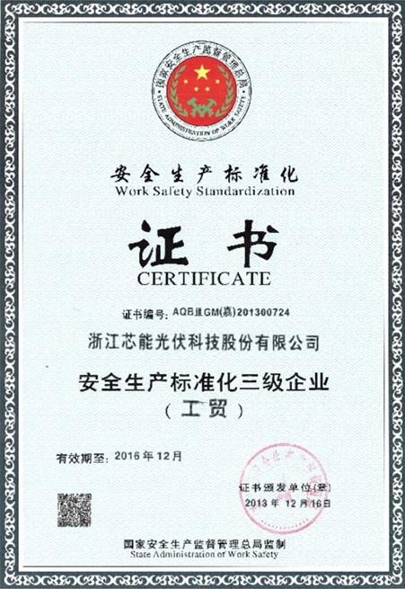 公司通過安全生產標準化三級驗收 2013-12-06 00:00:00 浙江芯能光伏科技股份有限公司 Viewd 4481 PreviousNo Information Next“浙江芯能海寧市建材商貿城1.6MWp光電建筑一體化應用示范項目”成功驗收